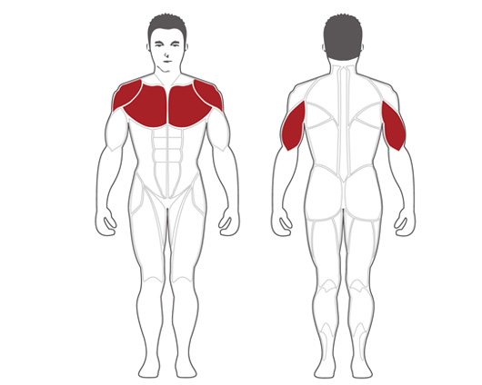 肌肉群:胸肌、三頭肌、斜方肌